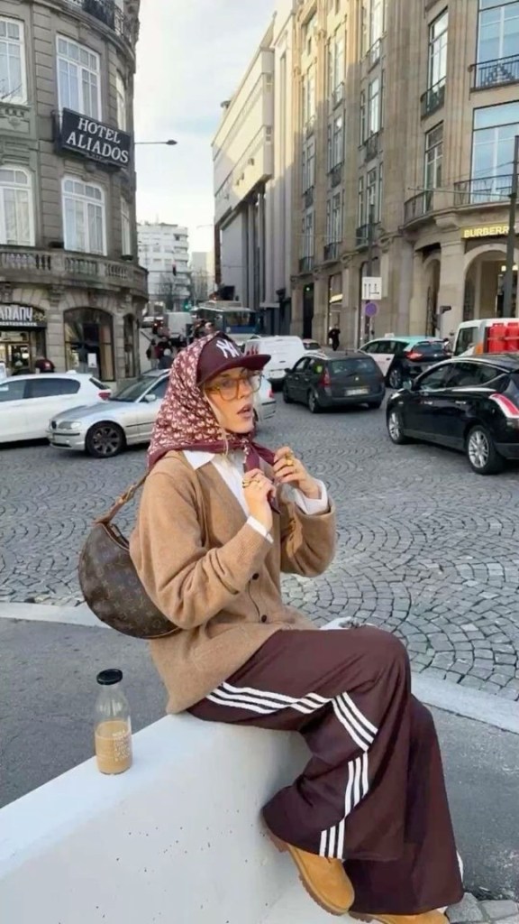 Como veis en este look es en colores neutros y prendas básicas que acompañan unos completamente más llamativos como son el pañuelo anudado en la cabeza con la gorra le dan el toque de atención al look con ese 30% del que hablamos antes.